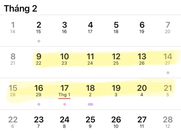 ⏰ Thời gian nghỉ: Từ 09/02 đến 21/02